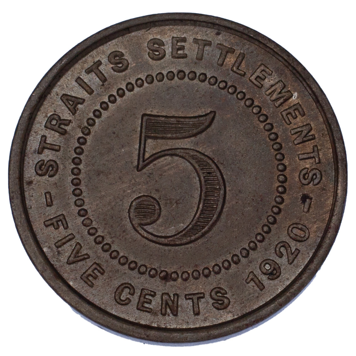 - 1920 Asentamientos De Los Estrechos 5 Centavos En XF, KM# 34
