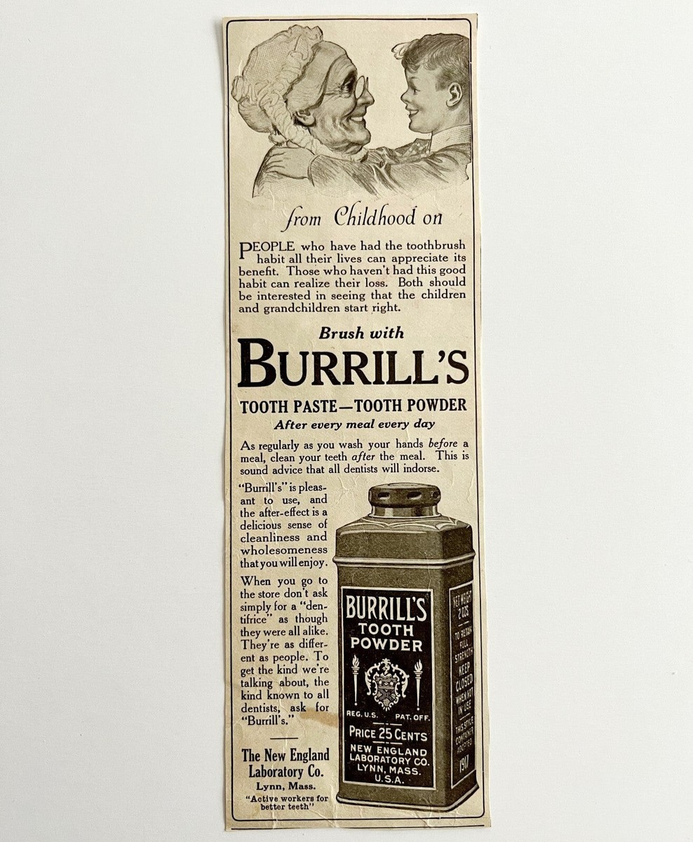 - 1920 Burrill's Toothpaste Powder Dental Advertisement Medical Ephemera
