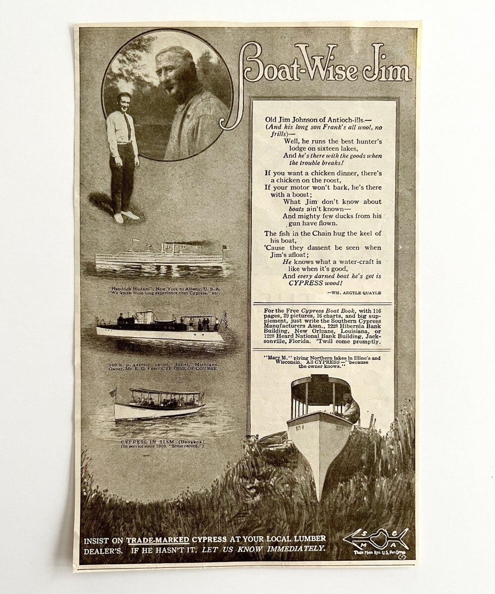 - 1920 Cypress Lumber Ships Boat Wise Jim Advertisement Nautical Ephemera