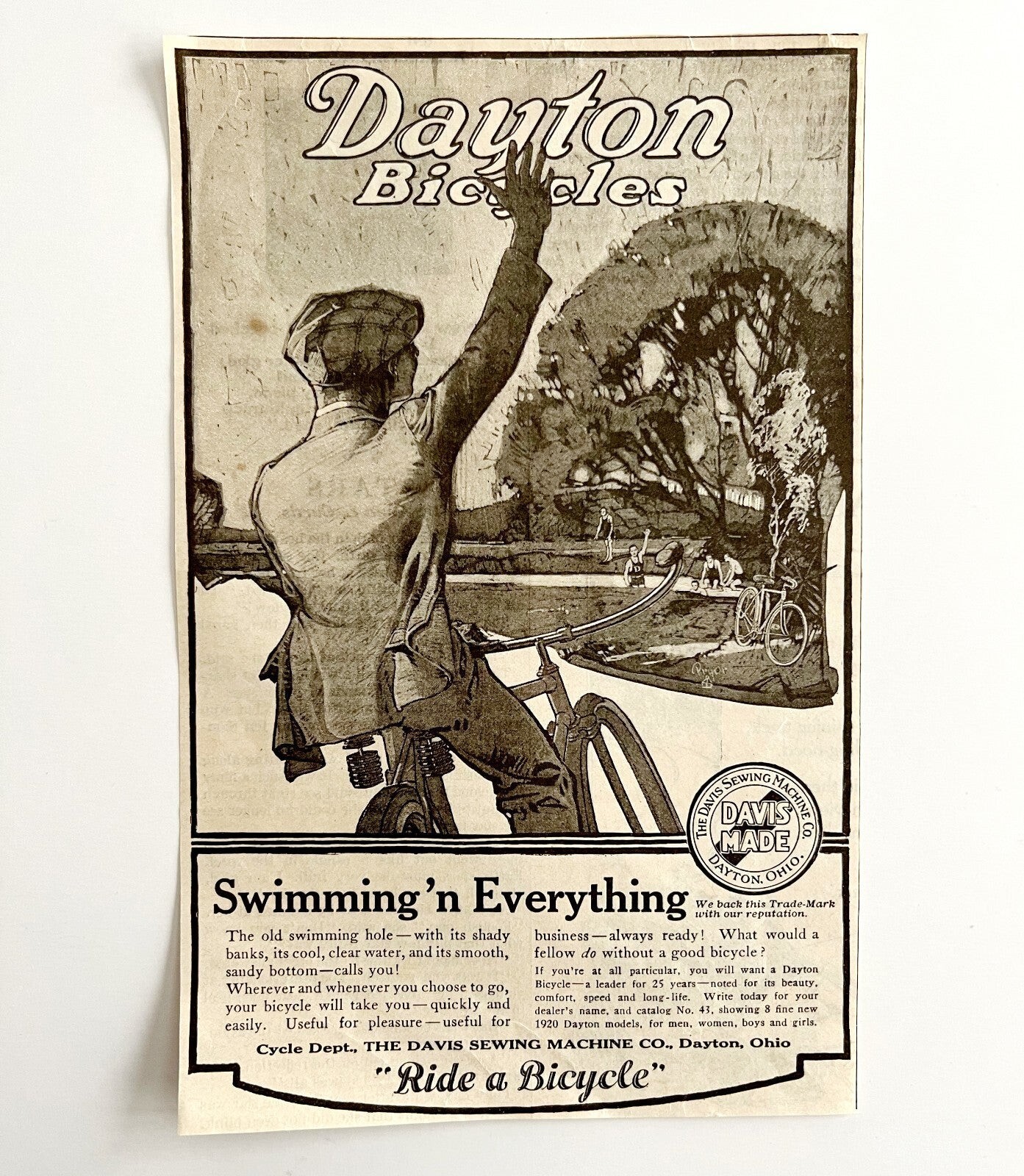 1920 Dayton Bicycles Advertisement Transportation Davis Sewing Co Ephemera 1