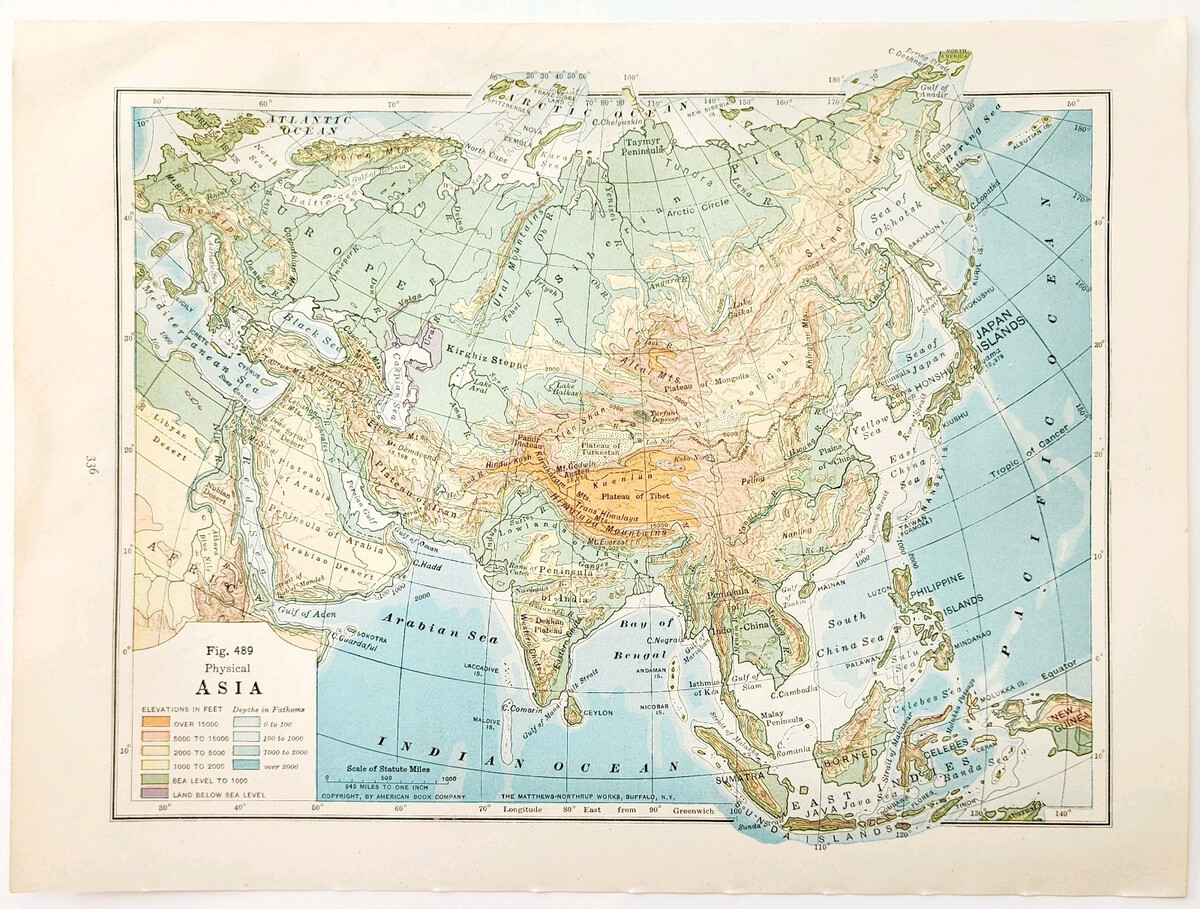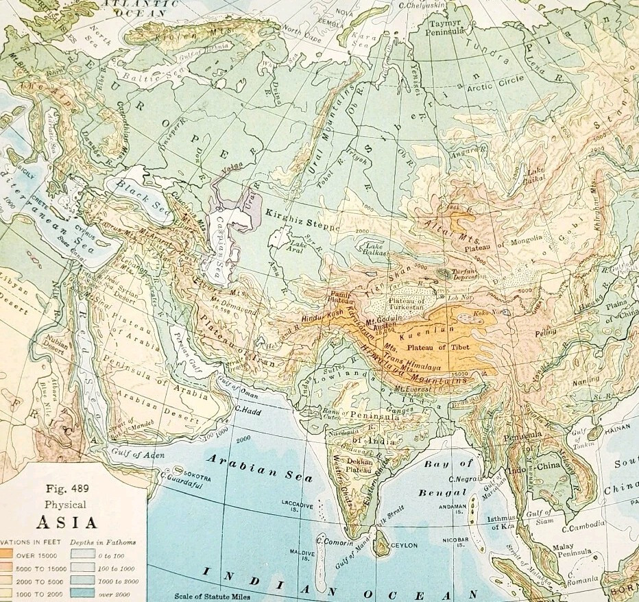 - 1920 Map Asia Arabia British India Russia Sinkiang Persia Physical Vintage DWQ5