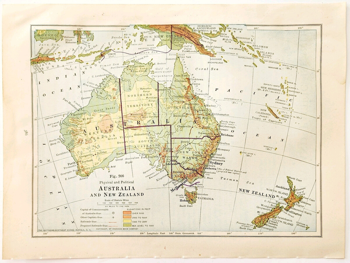 - 1920 Map Australia New Zealand Oceania Physical Political Boundaries DWQ5