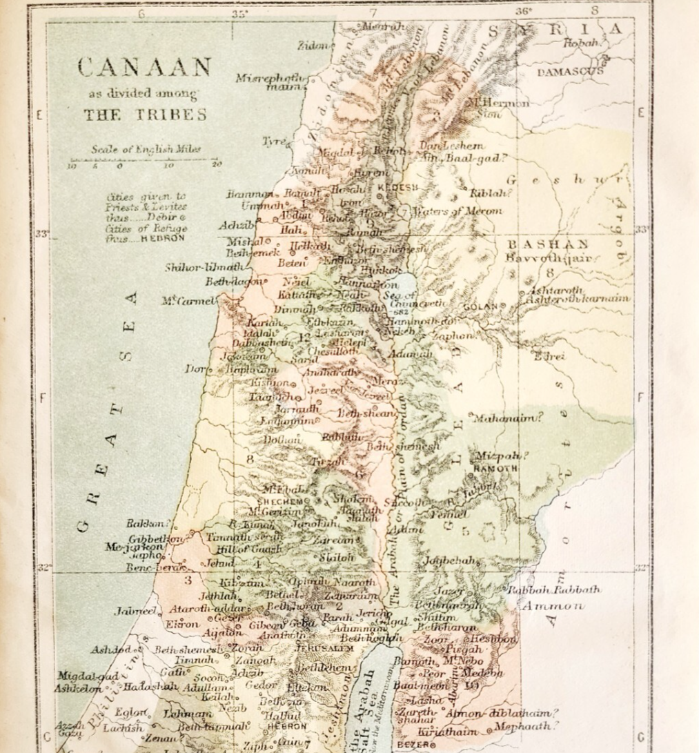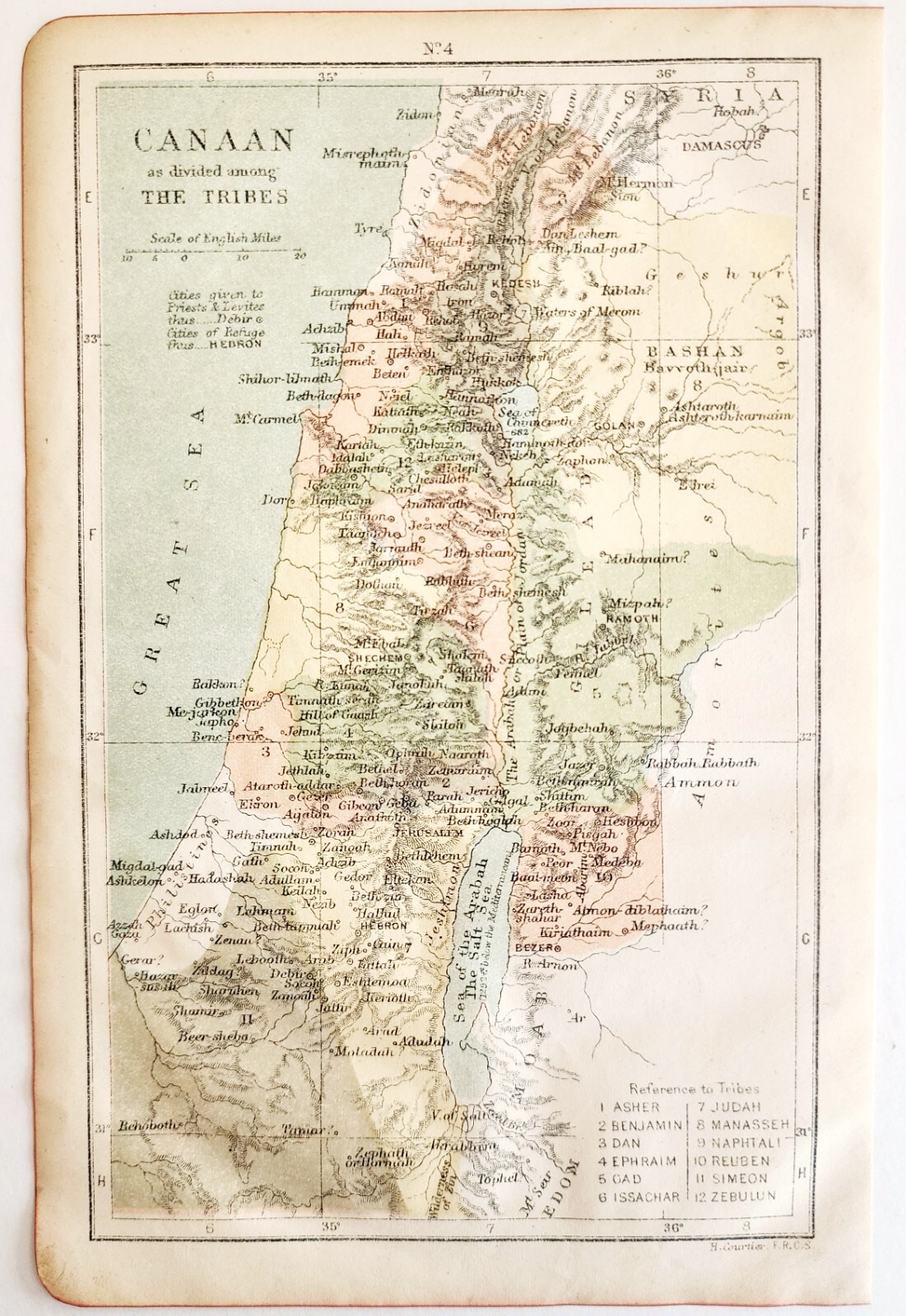 - 1920 Map Canaan Tribes Divisions Boundary Bible Page Christian Collectible DWG5
