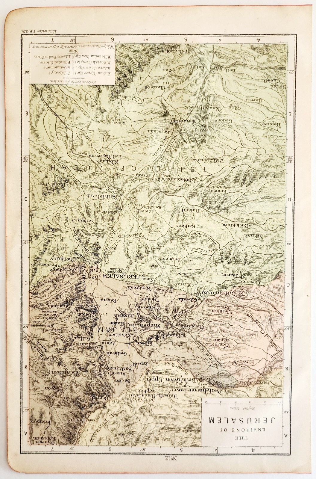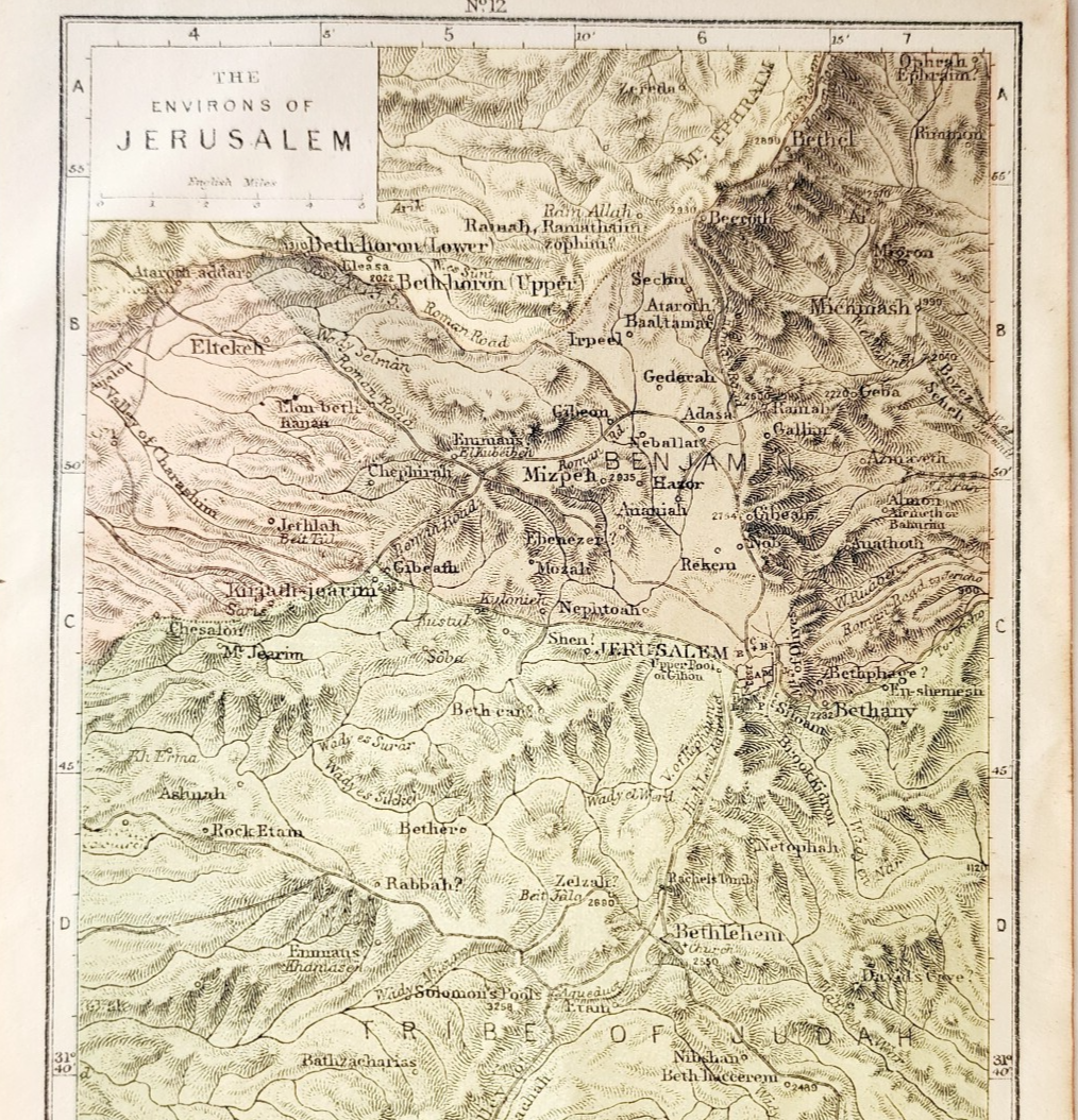 - 1920 Map Jerusalem Surrounding Environs Bible Page Christian Collectible DWG5