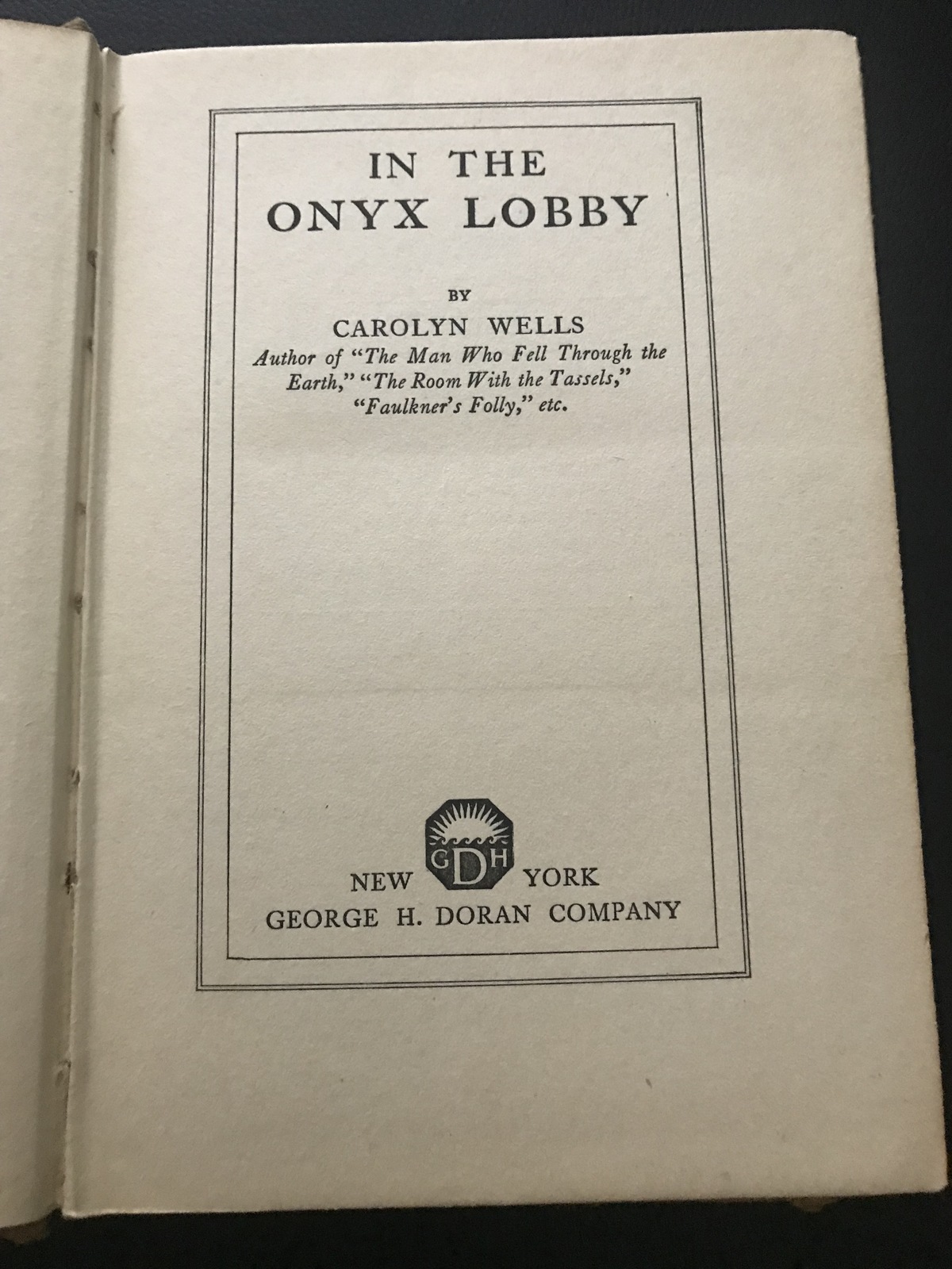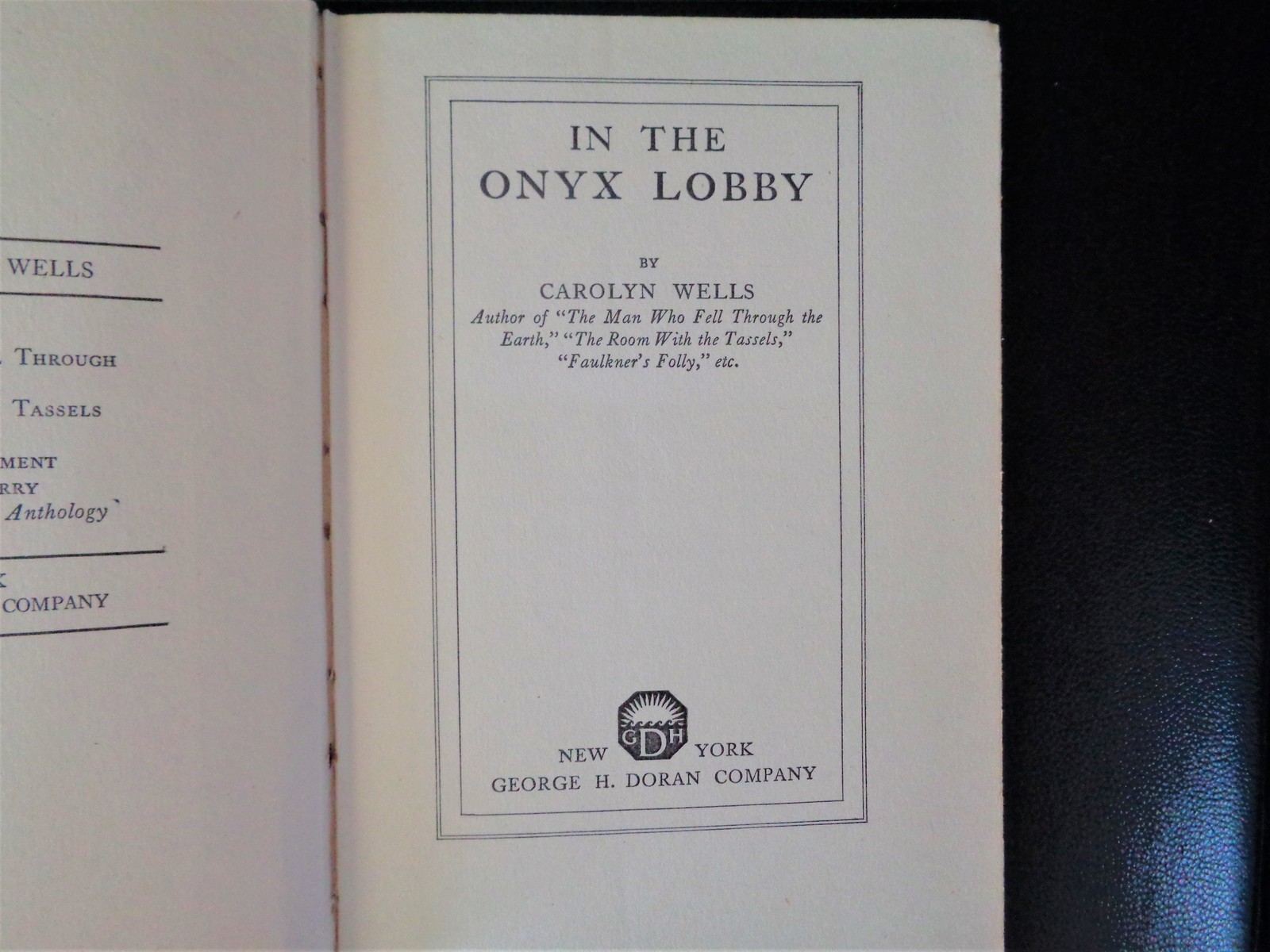 - 1920 Mystery Novel In the Onyx Lobby By Carolyn Wells Publisher - George H. Dura