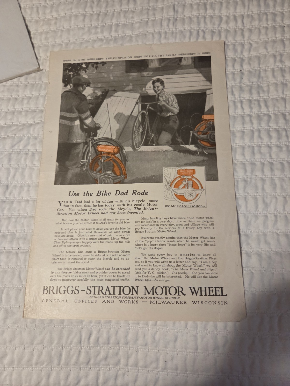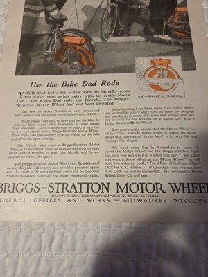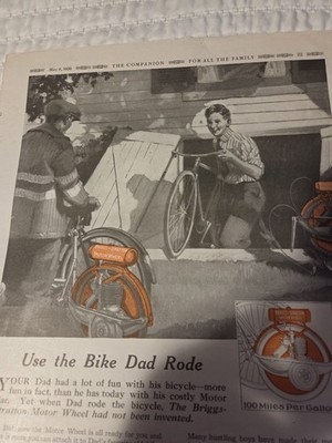 - 1920 Vtg. Bicycle ad. Briggs- Stratton Motor Wheel