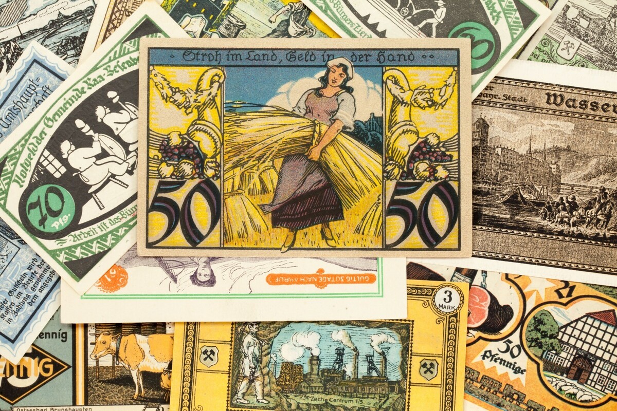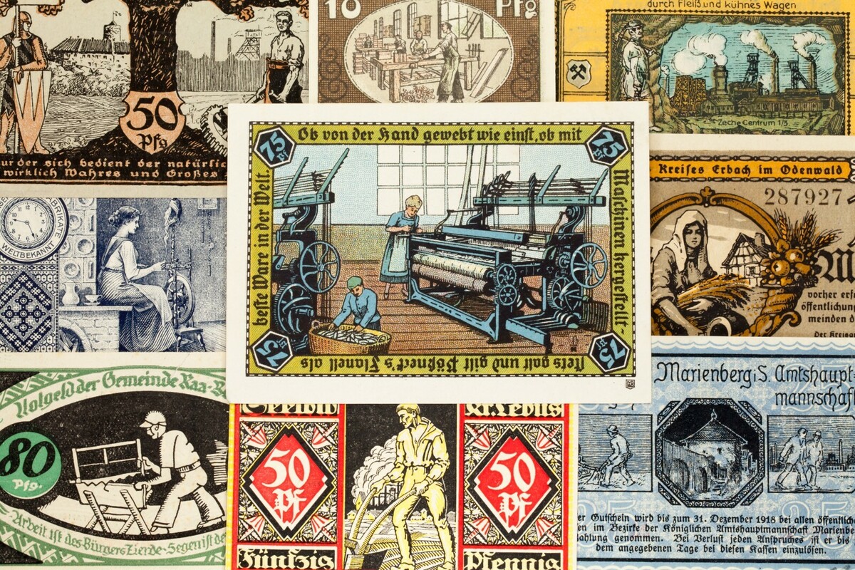 Este lote incluira 25 notas individuales de Notgeld de Alemania despues de la Primera Guerra Mundial. Todos estaran casi sin circular a la condicion no circulada (AU-UNC). Valores de cara entre 5 pfennig a 5 marca. Tema laboral e industrial; Trabajo agrícola, minero y fabril.