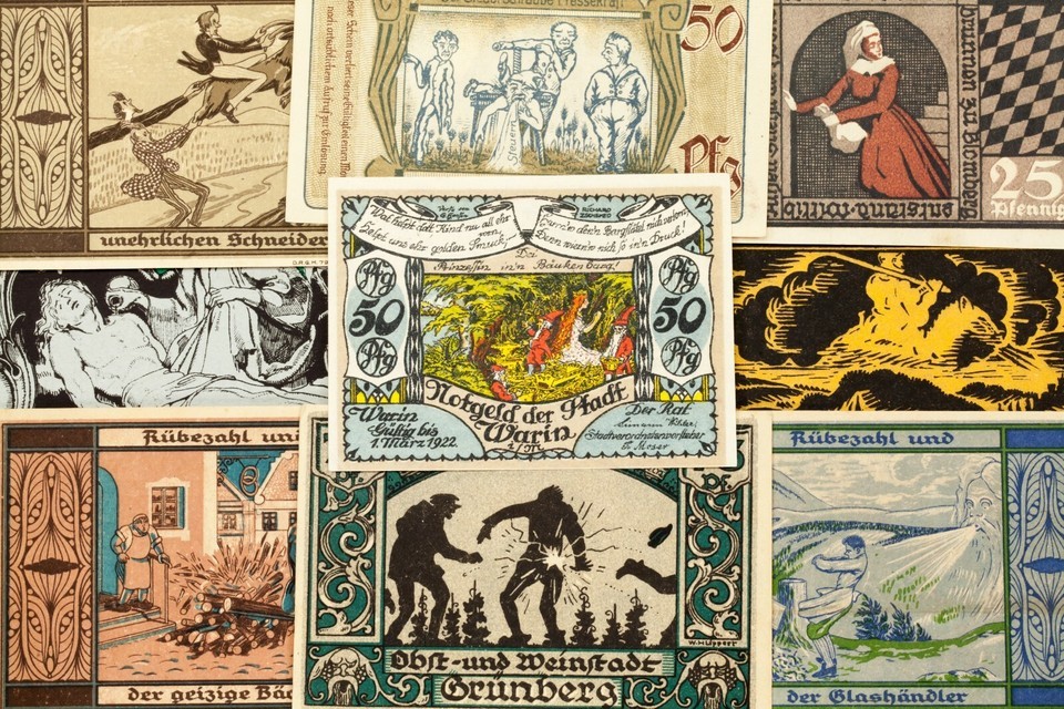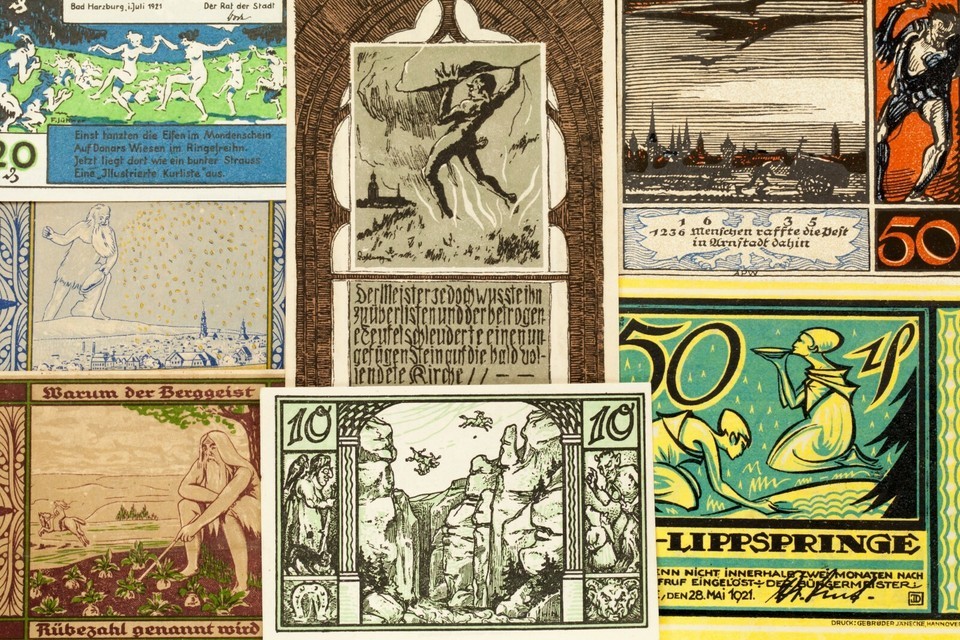 Ce lot comprendra 20 notes de notgeld individuelles d'Allemagne apres la Premiere Guerre mondiale. Valeurs faciales entre 5 pfennig a 5 marque. Theme mystique; bizarreries et surnaturel.