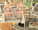 Ce lot comprendra 25 notes de notgeld individuelles d'Allemagne apres la Premiere Guerre mondiale. Valeurs faciales entre 5 pfennig a 5 marque. Visites de la ville, monuments, paysages et theme des chateaux, pas de doublons.