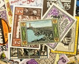 This lot will include 25 individual notgeld notes from Germany after World War I. All will be in Extra Fine to Uncirculated (XF-UNC) condition. Face values between 5 pfennig to 5 mark. City views, landmarks, famous buildings and landscapes theme. No duplicates.