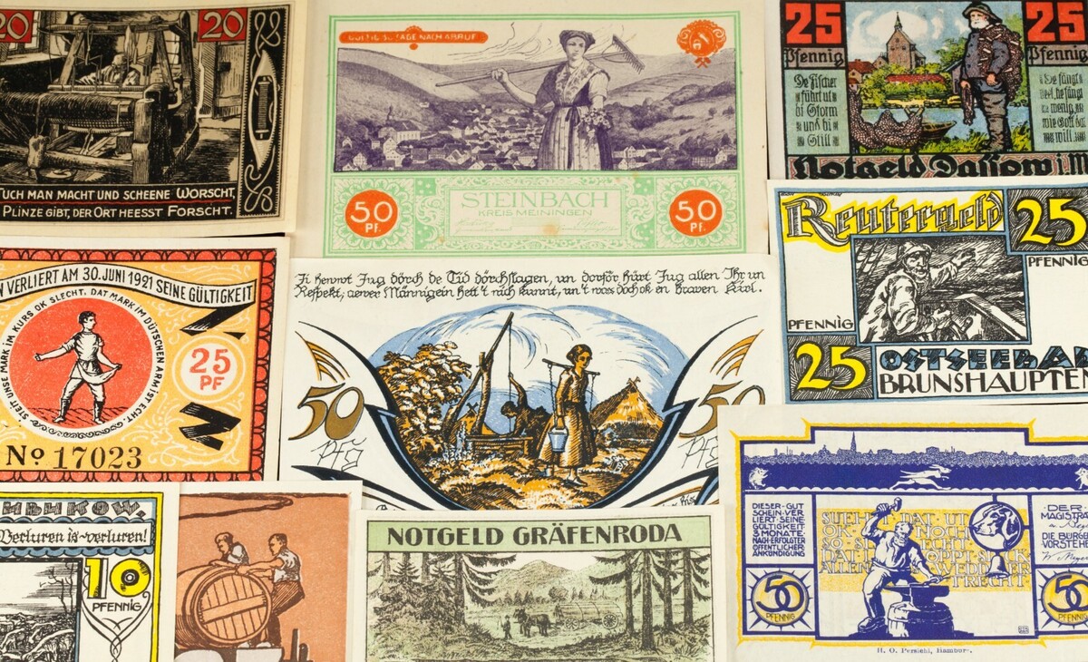 Notgeld (German for "emergency money" or "necessity money") refers to money issued by an institution in a time of economic or political crisis. The issuing institution is usually one without official sanction from the central government. This occurs when state-produced money is not available from the central bank. Issuing institutions could be a town's savings banks, municipality and private or state-owned firms.