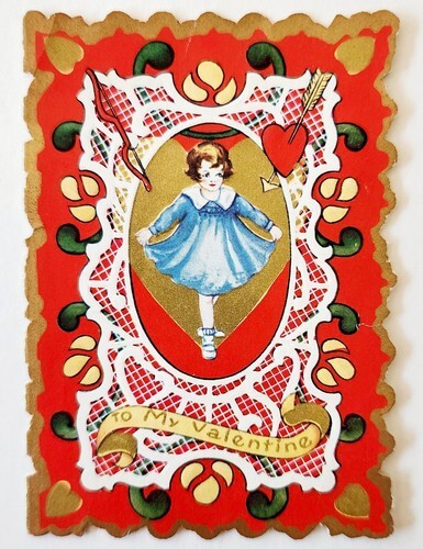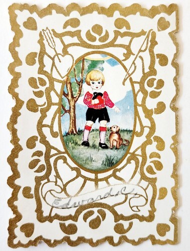 - 1920s-30s Valentines Day Card Die Cut Gold Gilded Antique Ephemera E89A
