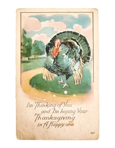 1920s Greeting Card Postcard Happy Thanksgiving Turkey Holiday Ephemera E83C