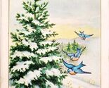 - 1920s Greeting Card Postcard Merry Christmas Tree Blue Birds Ephemera E83B