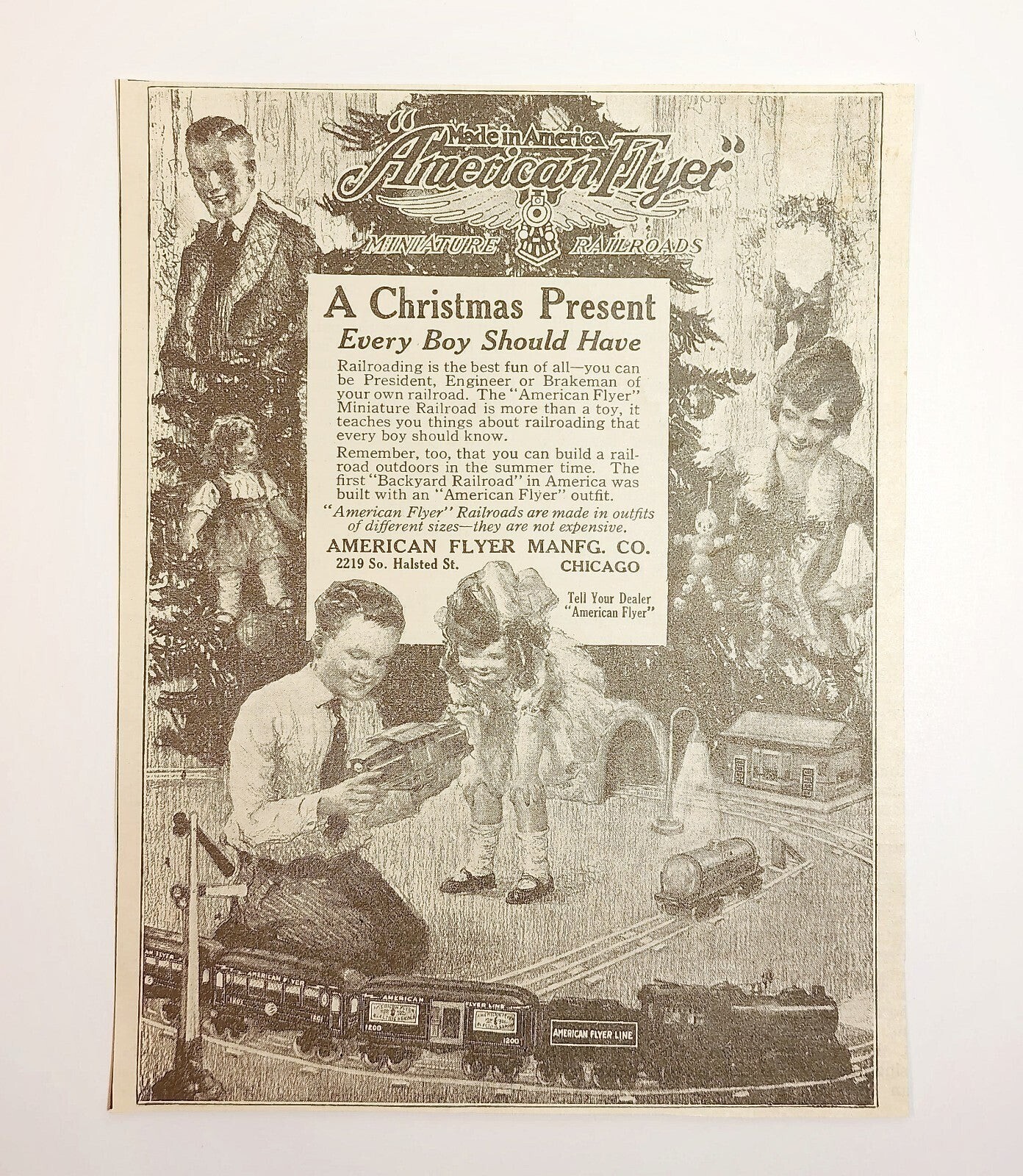 1921 American Flyer Railroad Christmas Advertisement Train Ephemera