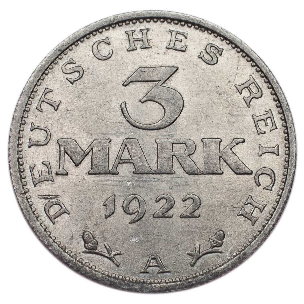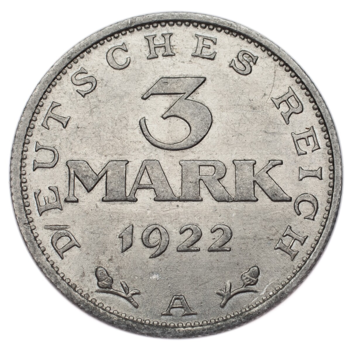 - 1922-A Allemand 3 Mark 3rd Anniversaire De la Constitution Weimar République UNC
