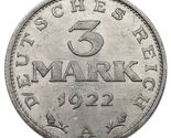 1922-A Allemand 3 Mark 3rd Anniversaire De la Constitution Weimar République UNC
