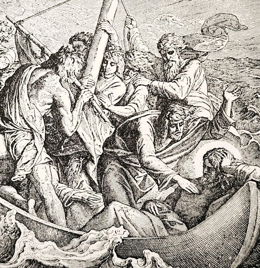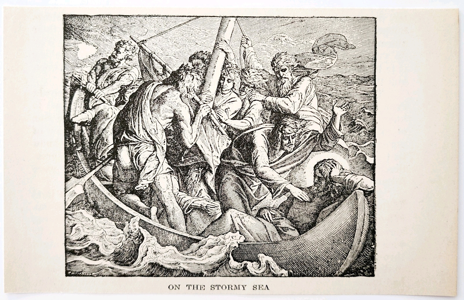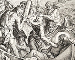 - 1922 Jesus & Apostles On The Stormy Sea Wood Engraving Bible Story Vintage DWSS4