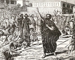 - 1922 Jonah Preaching In Nineveh Wood Engraving Bible Story Vintage DWSS4