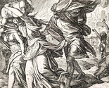 1922 Lot & Daughters Fleeing From Sodom Wood Engraving Bible Story Vintage DWSS3