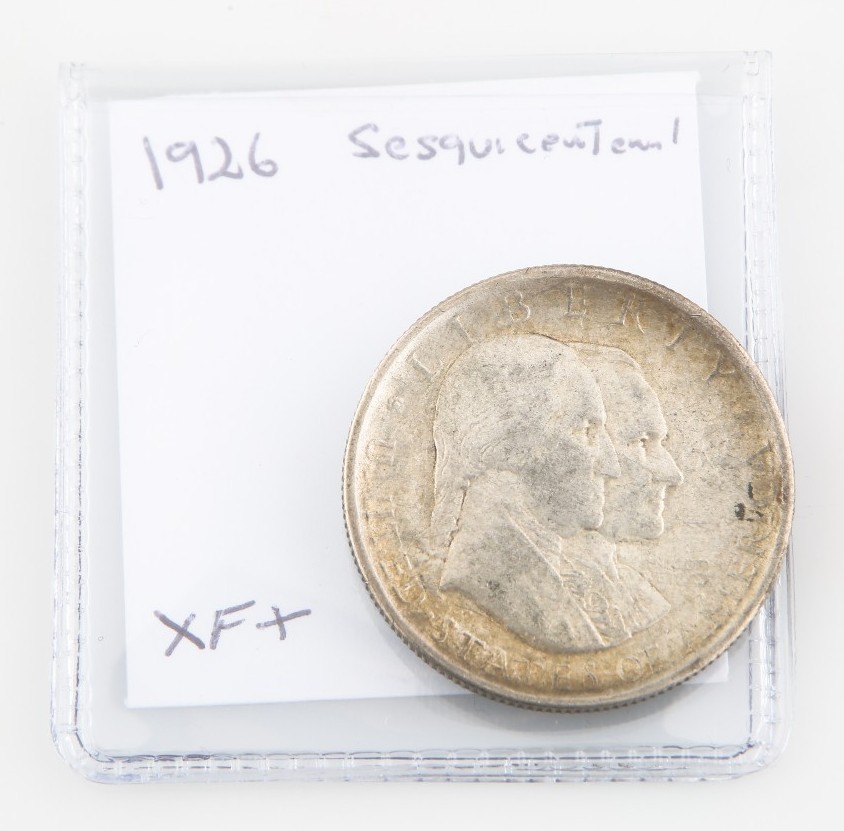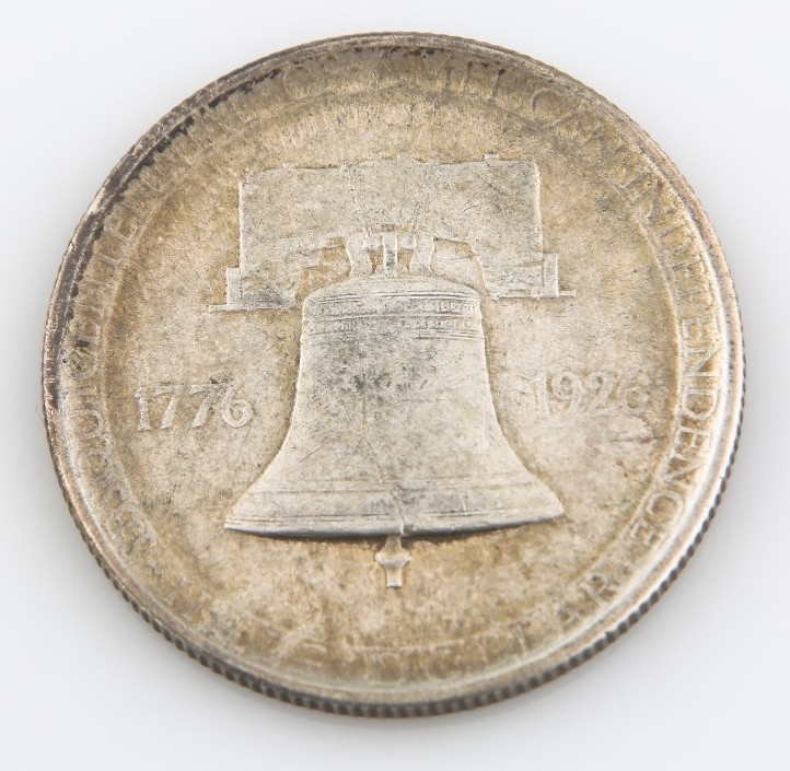 1926 50¢ Sesquicentennial Commemorative Silver, XF Condition, Some Toning Rim...