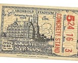 For Sale is a rare and hard to find vintage 1926 College Football ticket stub Colgate Syracuse. Its In VG Condition with Some Minor Handling wear as pictured we have included one of the front and back. Please ask Any and All Questions prior to purchasing. Nice addition to any College Bowl Collection. Fast Same or Next day shipping with Free Delivery Confirmation within the U.S. Payment Due within 7 days of purchase (if you need more time please let us know In advance) we love to combine shipping is always a Yes and Most of the time Additional Items Ship for free.