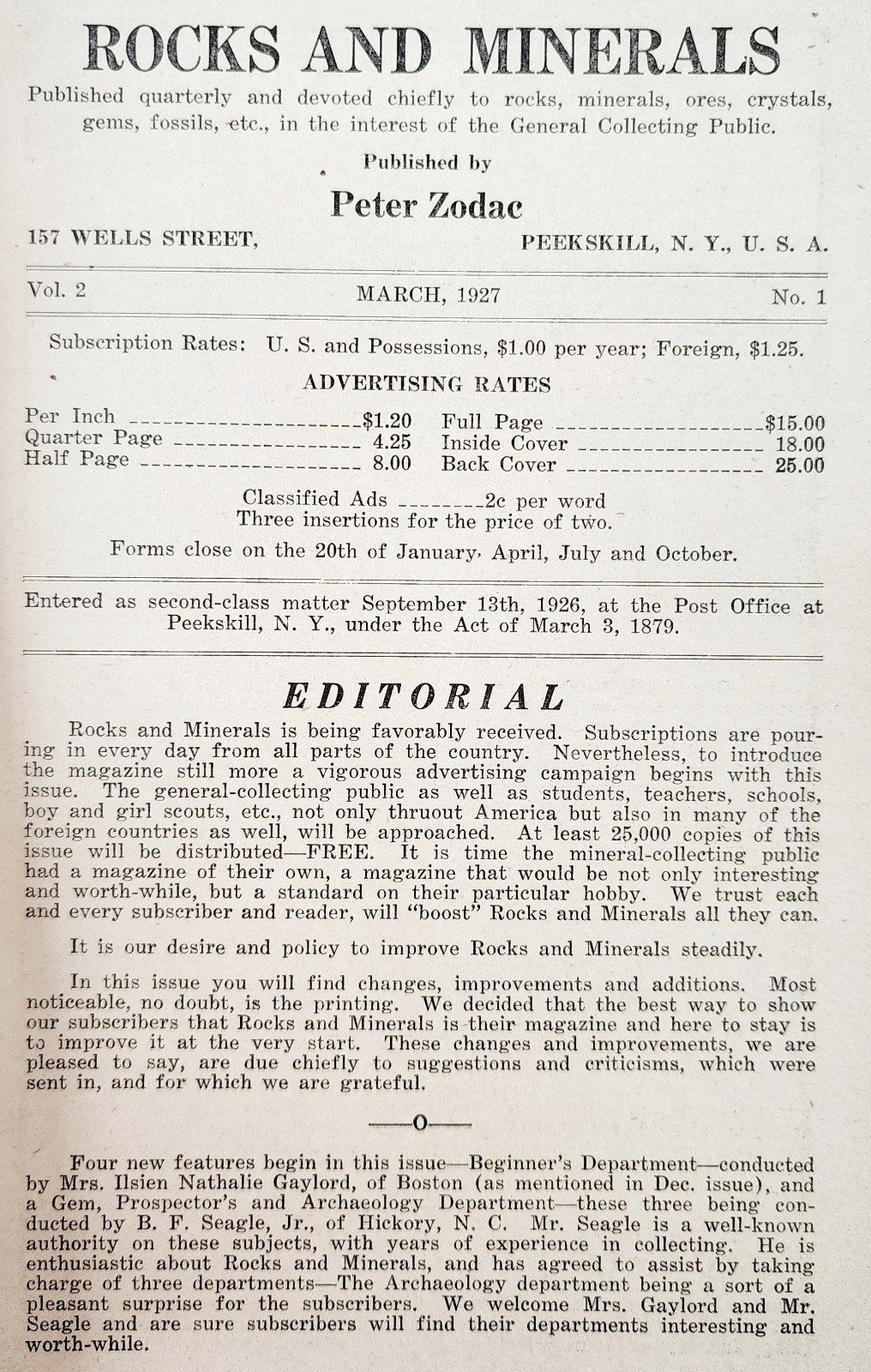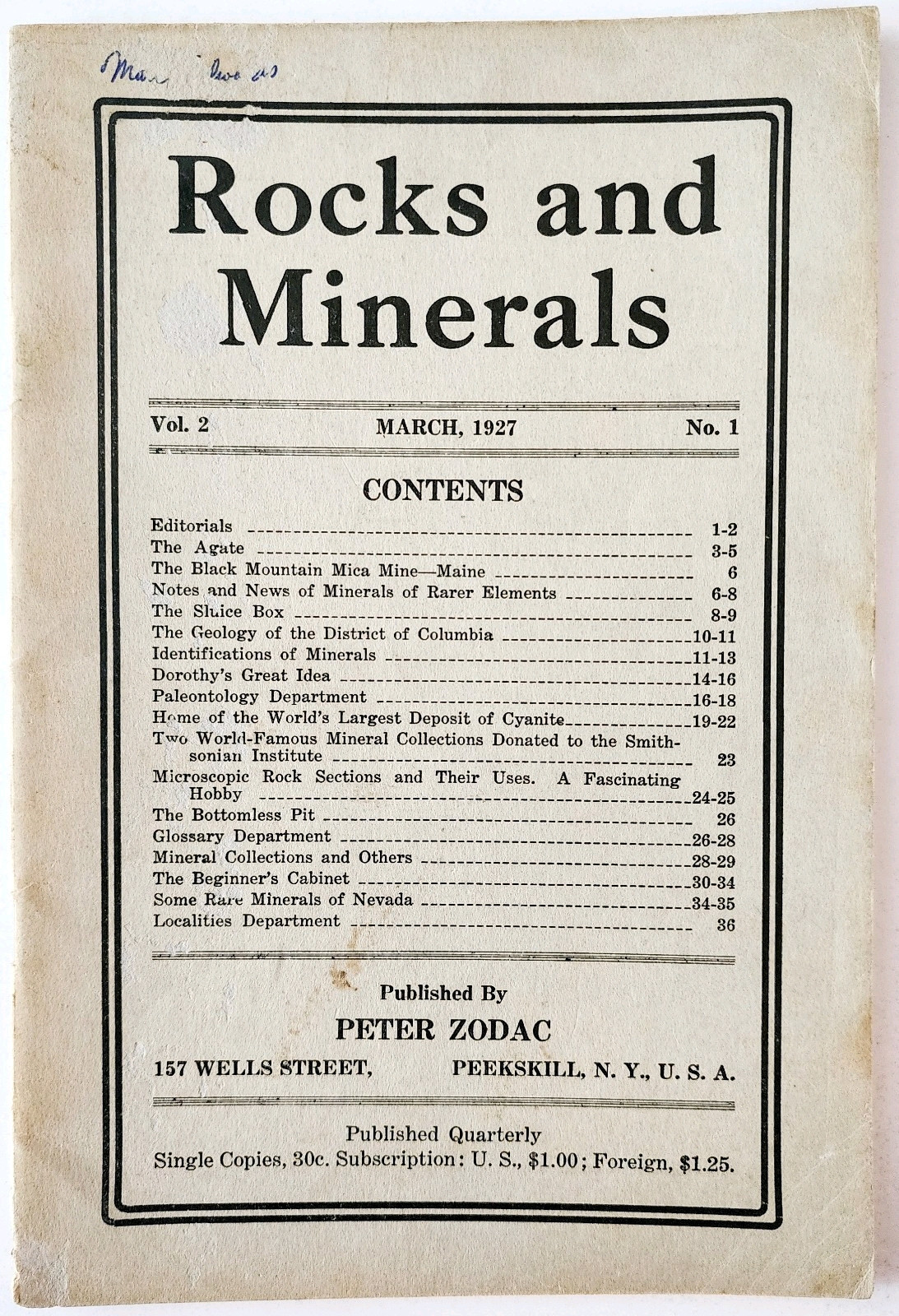 - 1927 Rocks And Minerals Quarterly Publication PB Book Vol 2 No 1 Zodac E99F