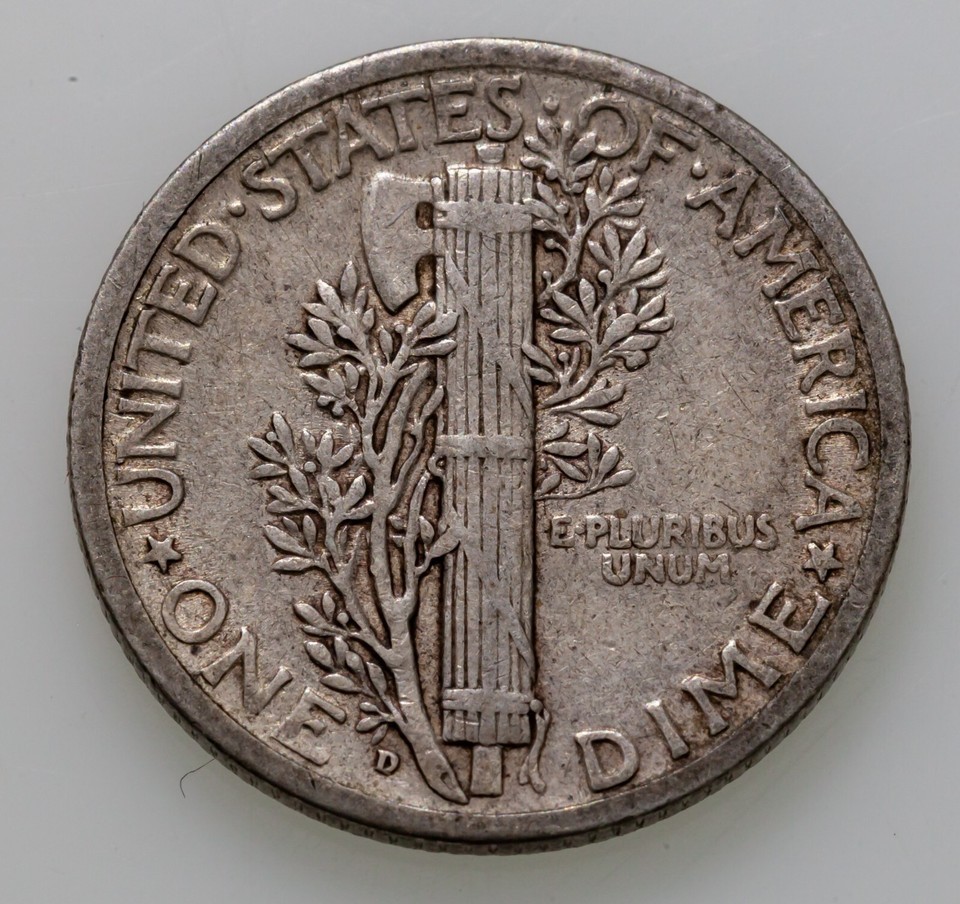 1928-D 10C Mercury Dime in Extra Fine XF Condition, Mostly White, Light Toner...