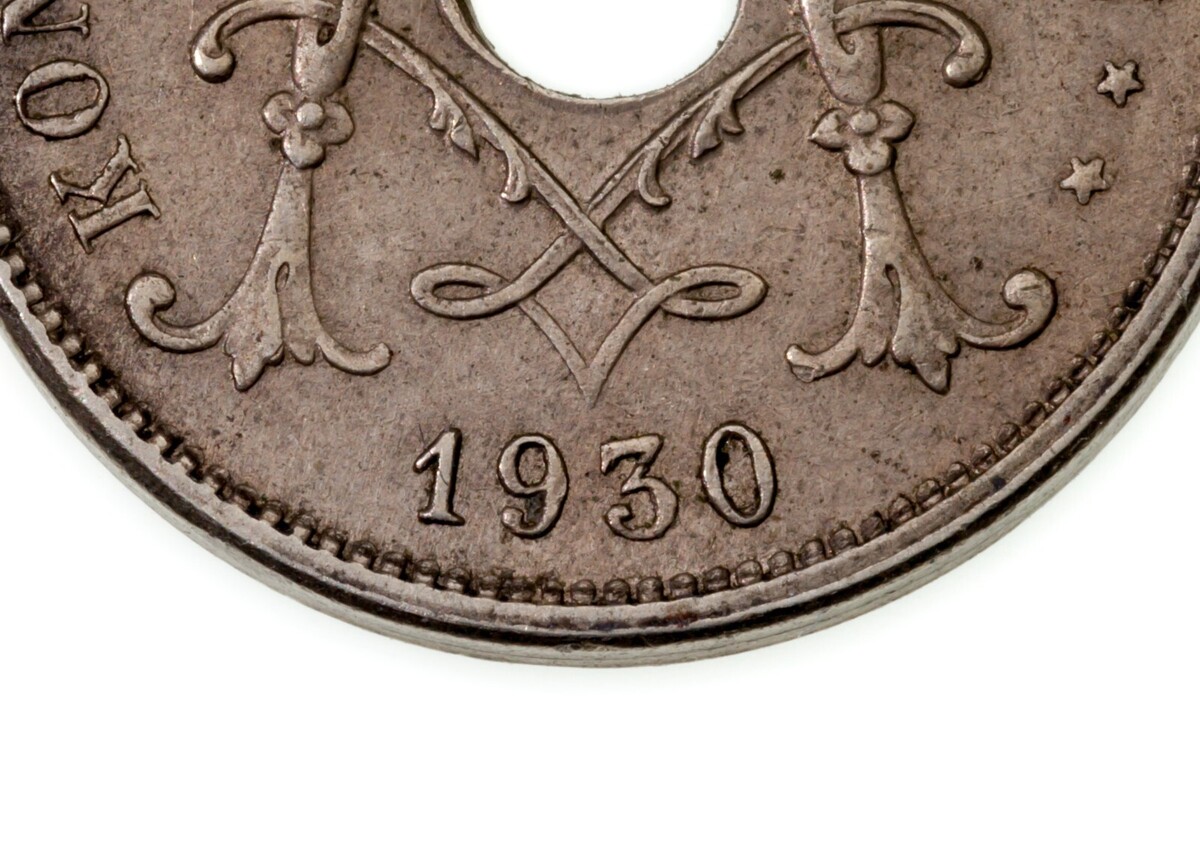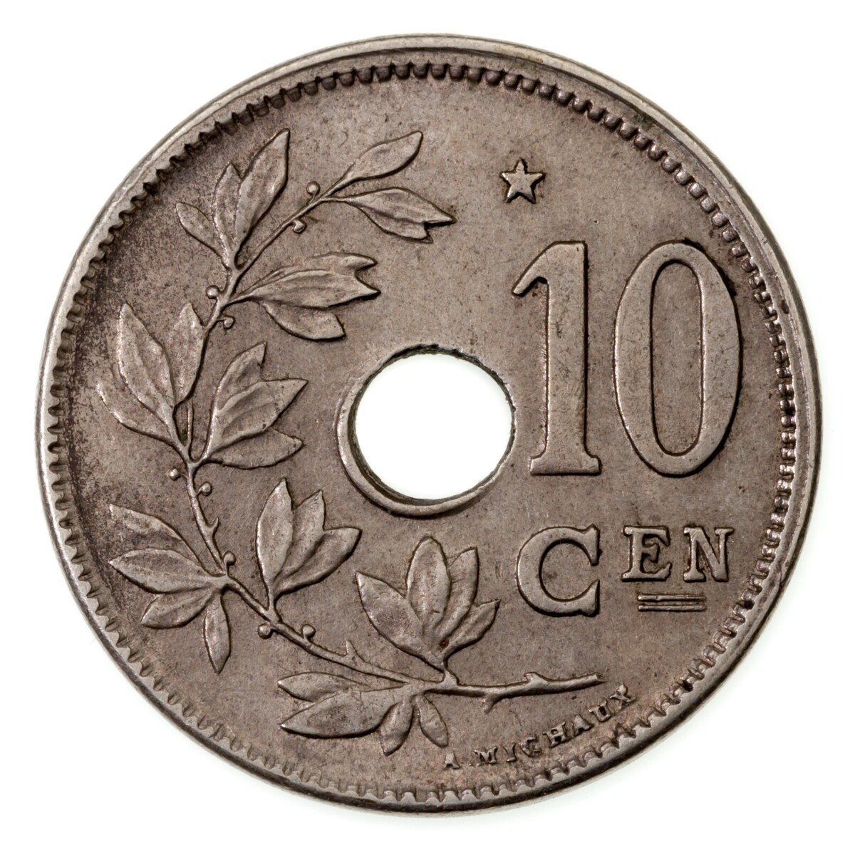 - 1930 Belgium 10 Centimes Coin in Extra Fine, KM# 86