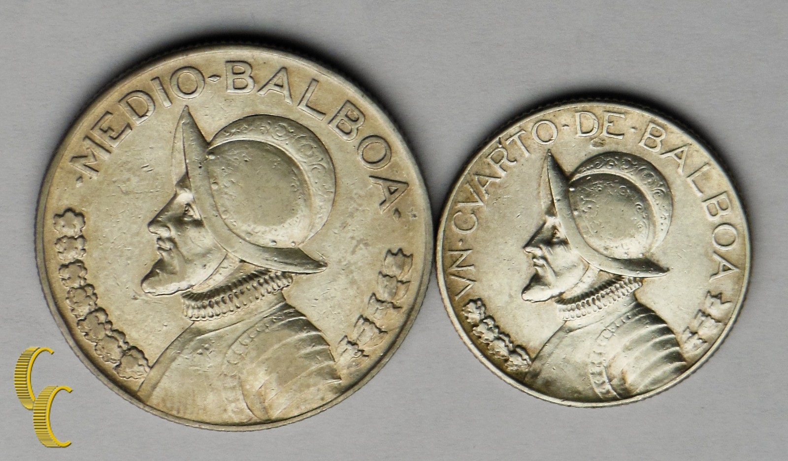 1930 Panama 1/4 Balboa 1/2 Balboa Silver Coin Lot de 2, km # 11.1, 12.1