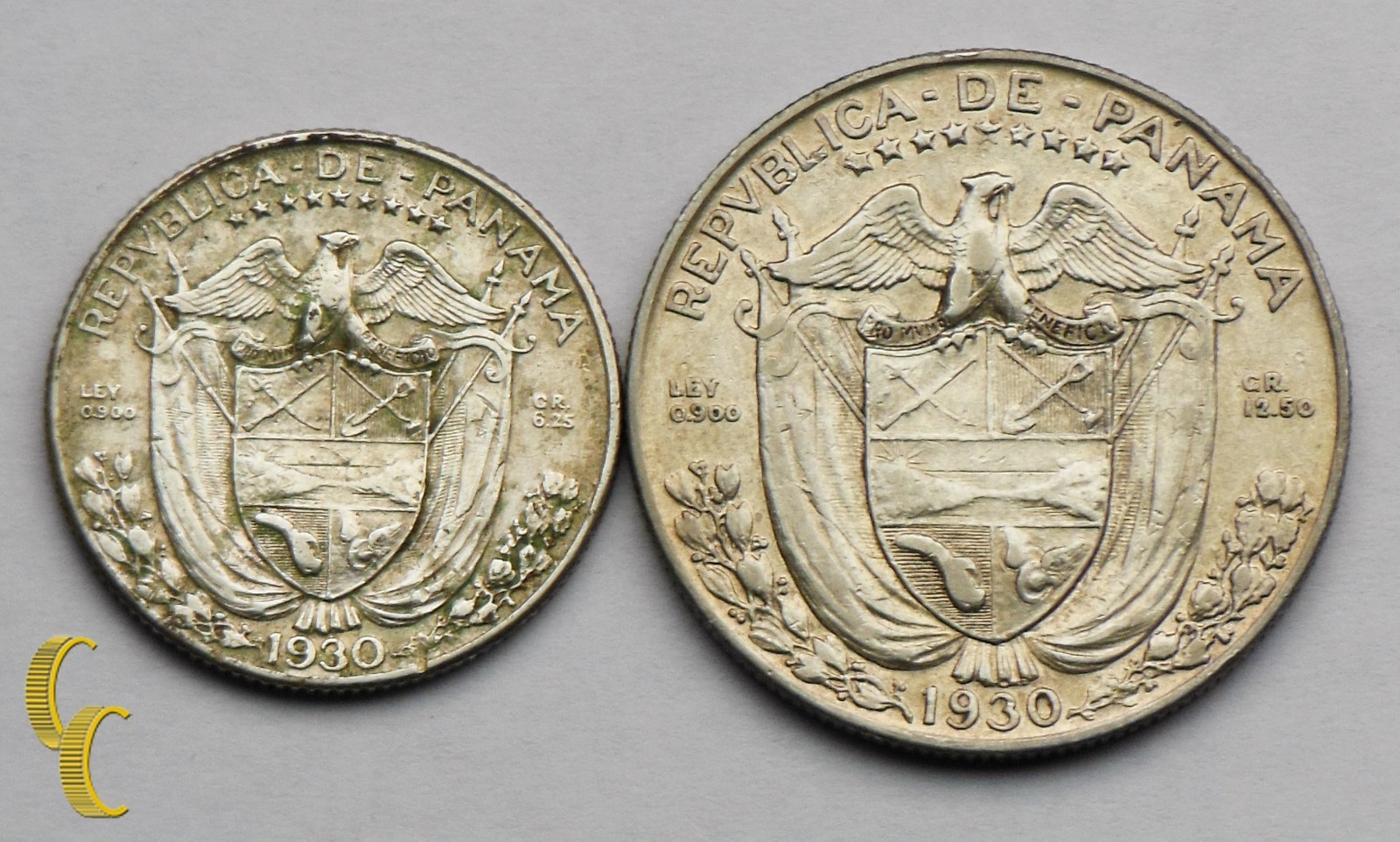 1930 Panama 1/4 Balboa & 1/2 Balboa Pièce Argent plein De 2, Km#11.1 , 12.1