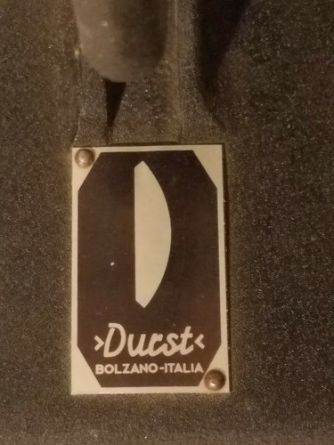 A vendre est une visionneuse de films negatifs Durst des annees 1930 qui S'allume et est fait Metal et peint en noir de Bolzano Italie. La marque a ete utilisee entre 1936 et 1946.