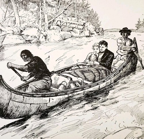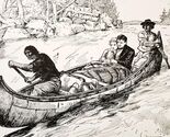 - 1930s-40s Art Print Couple Rescued In Canoe By Native Americans E89D