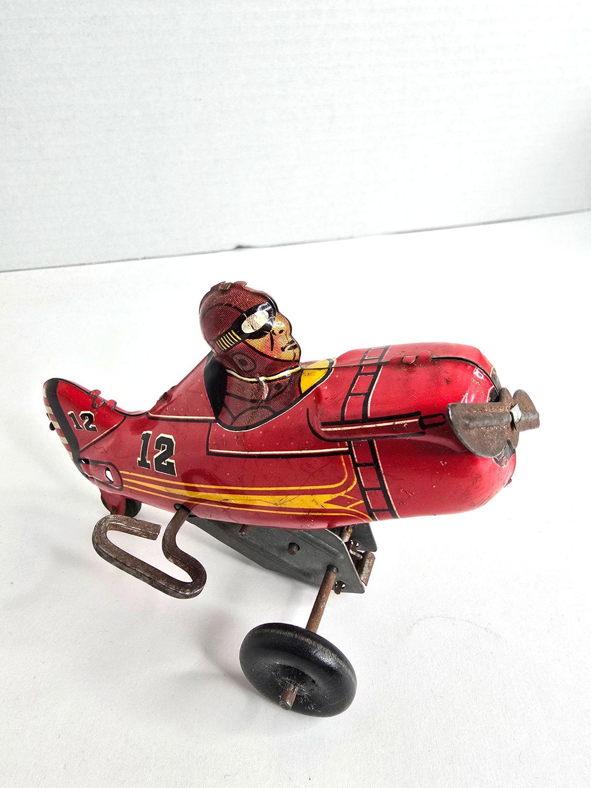 * Mechanism: This was a wind-up toy. When wound, the propeller would spin and the wheels would move it forward. The "Sparkling" in its name refers to a flint mechanism in the nose that would create sparks as the propeller turned, a popular feature in toys of that era.