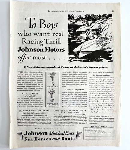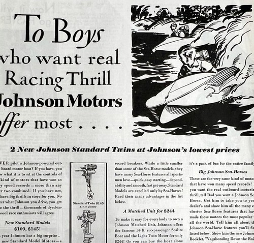 - 1931 Johnson Motors Advertisement Antique Sea Horses Boats Nautical Ephemera