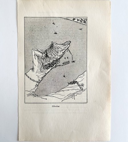 1932 Gibraltar Interpretive Map Print Van Loon Geography Pen and Ink Art