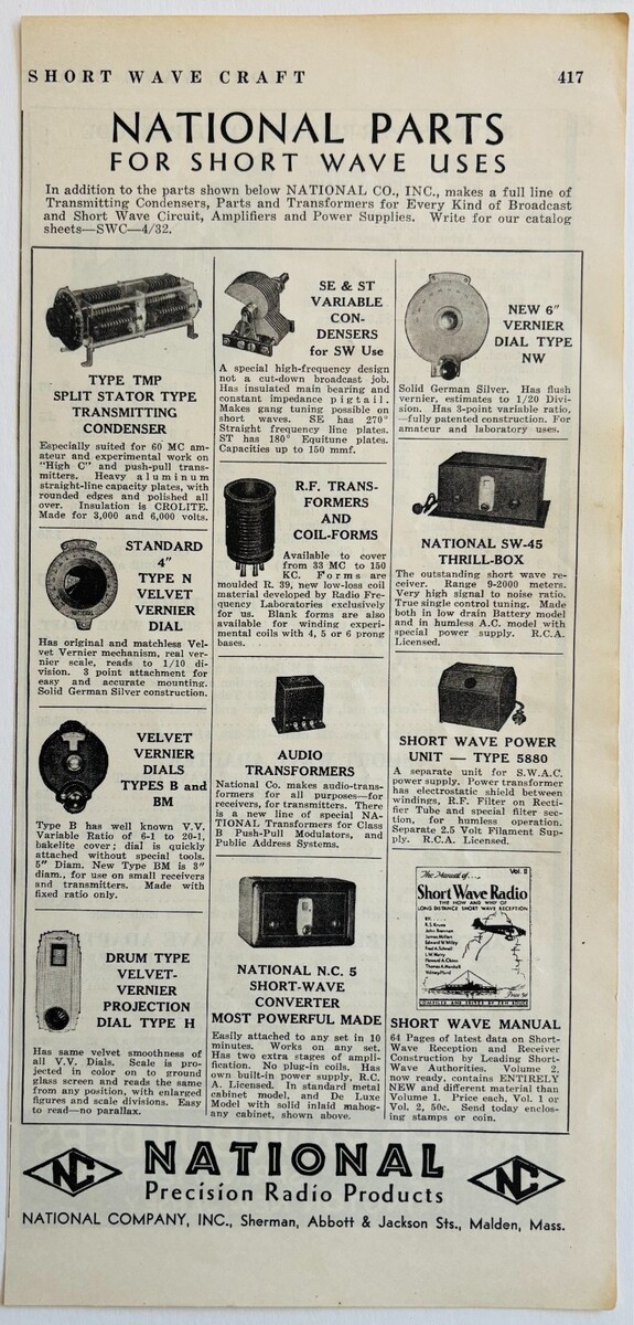 1932 National Precision Radio Advertisement Massachusetts Parts Supply DWP9A