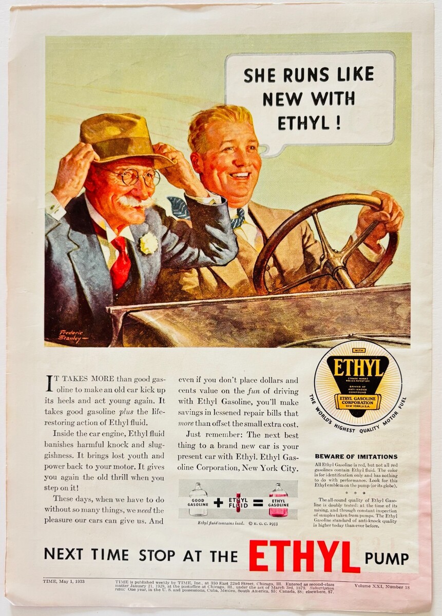 1933 Ethyl Gasoline And Oil Advertisement Automobilia Supply Red Gas F18B1