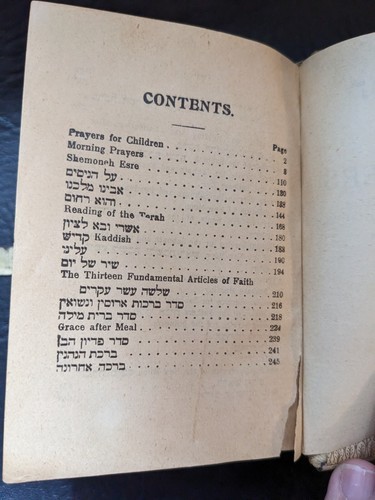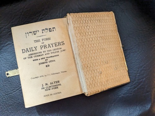 A la venta esta un uso de oraciones diarias judías usadas de 1933 siddur hebreo ingles polaco aleman decorado con joya y madera. ,