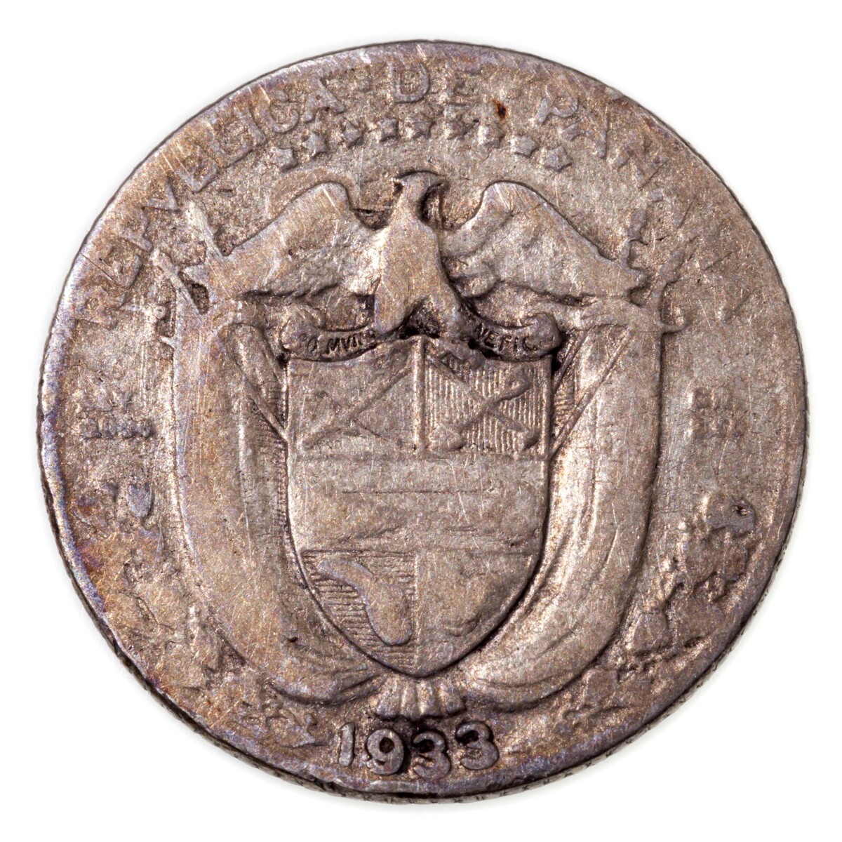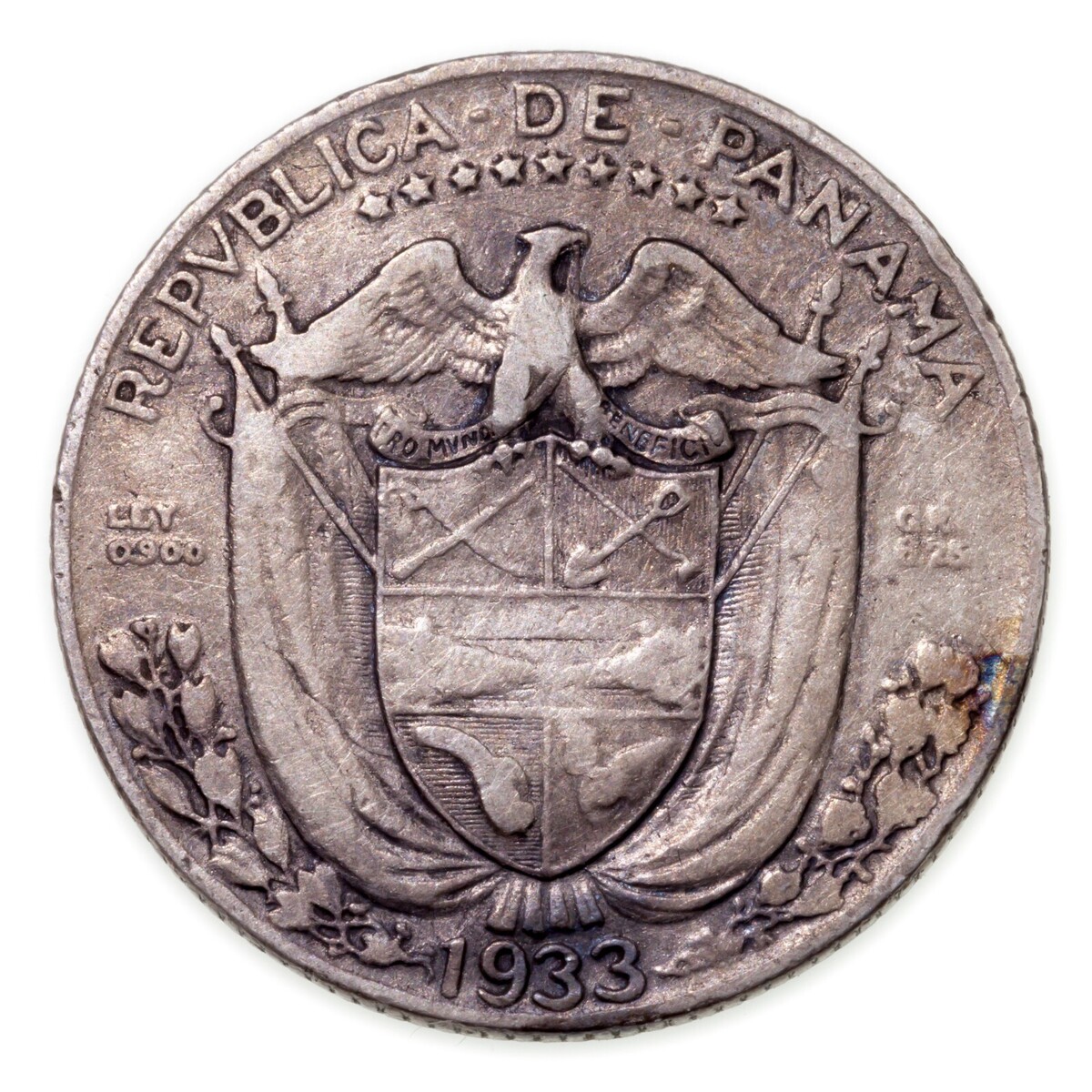1933 Panama 1/2 Balboa Moneda de Plata En XF Estado Km 12.1