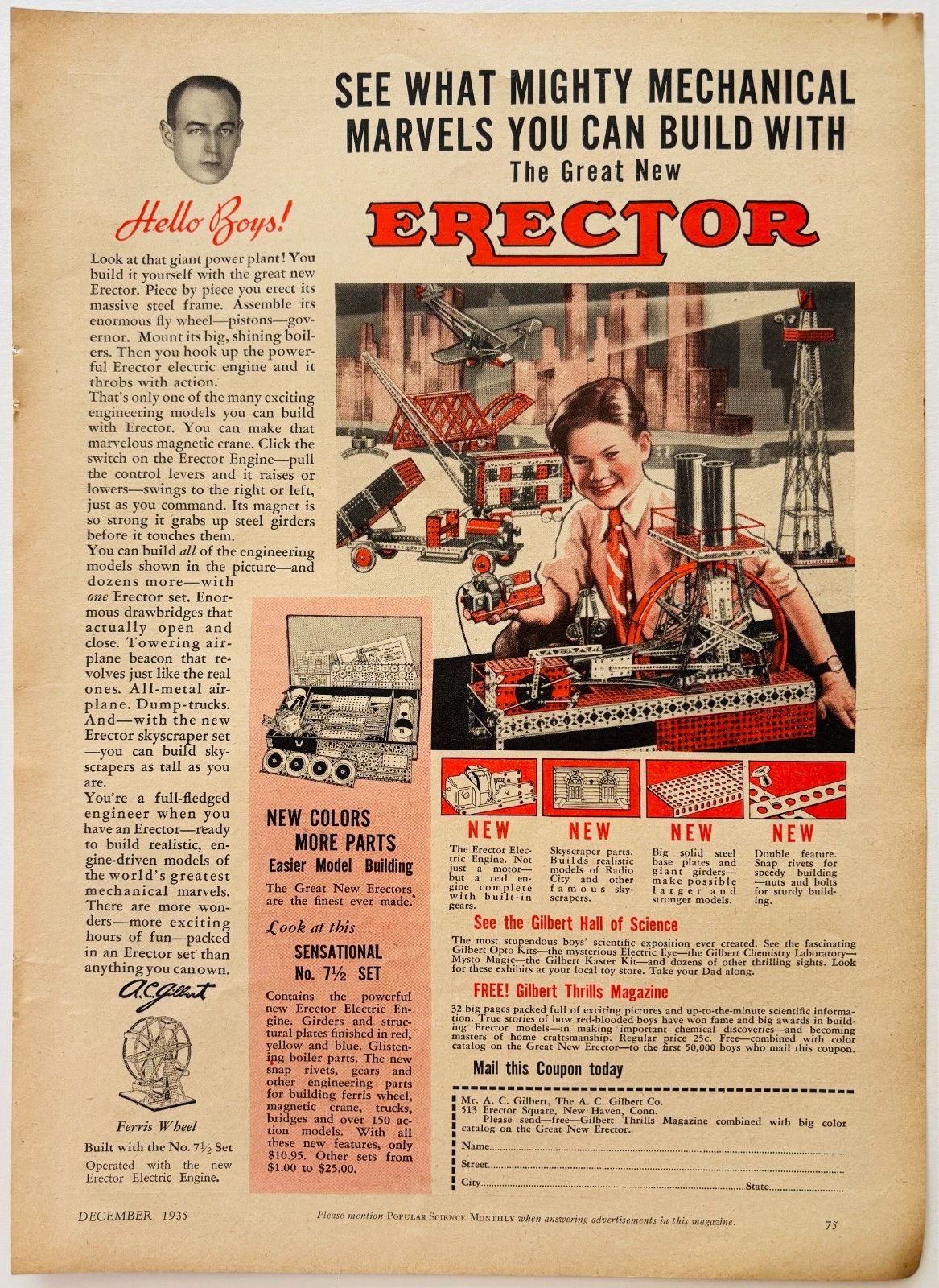- 1935 Erector Set Power Plant Advertisement Antique Building Toy Sets E90F1