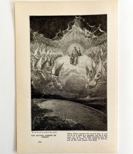 1935 The Second Coming Of Christ With Trumpeting Angels Religious Print DWN10C