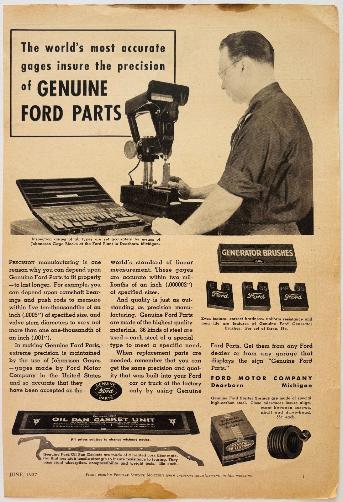 1937 Ford Motor Company Genuine Parts Advertisement Automobilia Supply E90F2