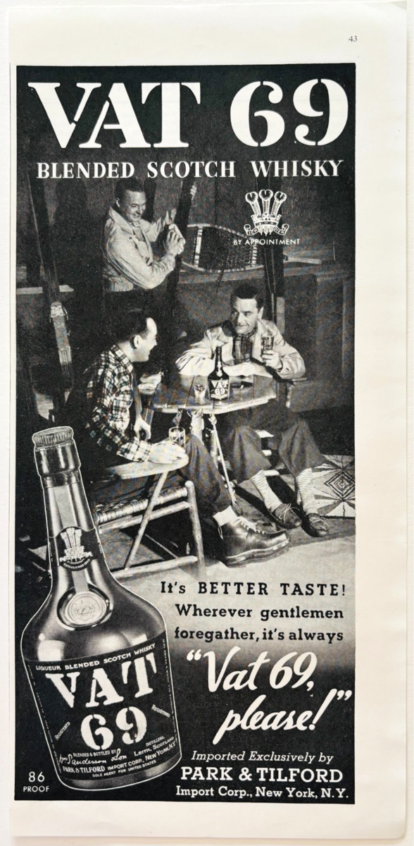 - 1937 Vat 69 Scotch Whisky Advertisement Vintage Distillery Liquor E90E1