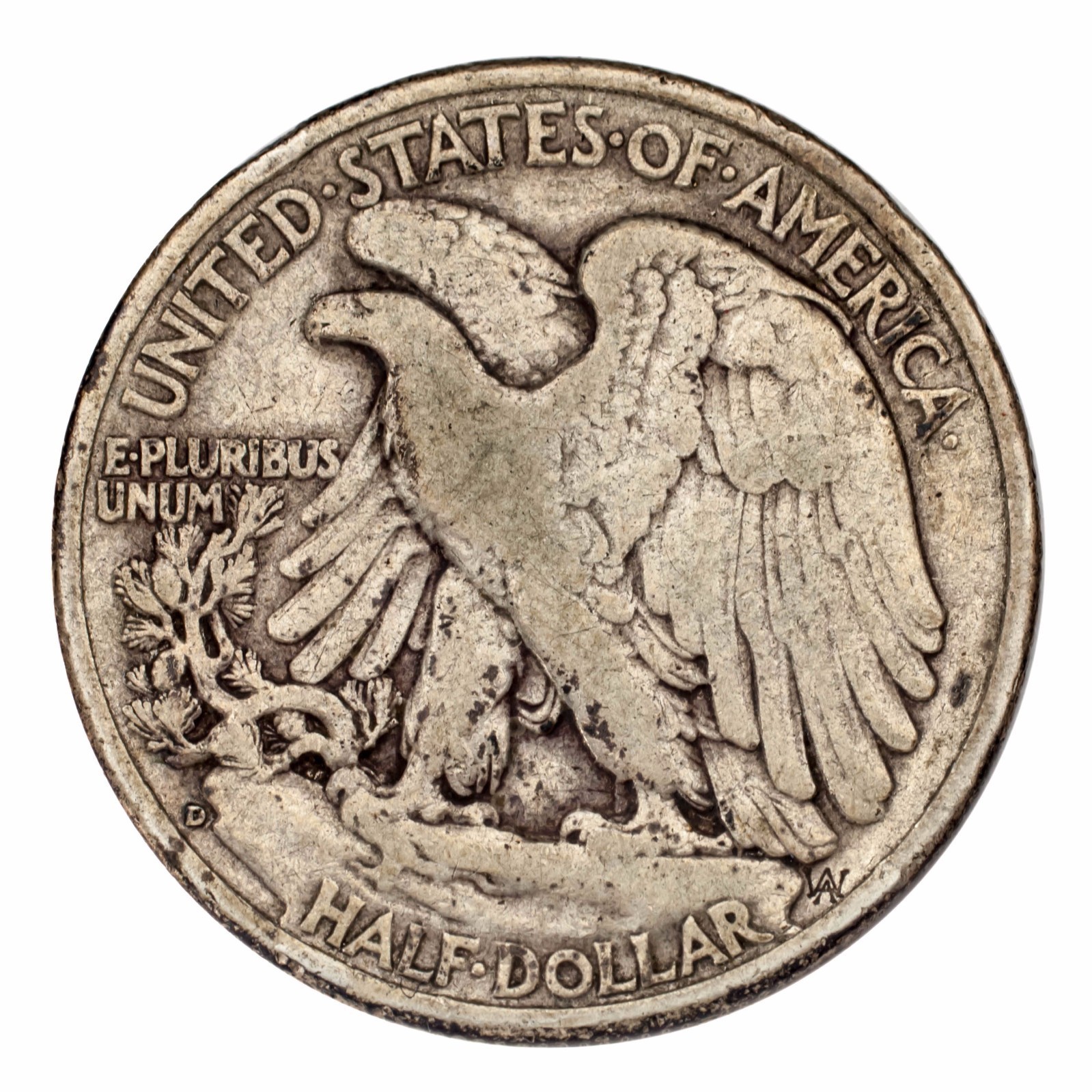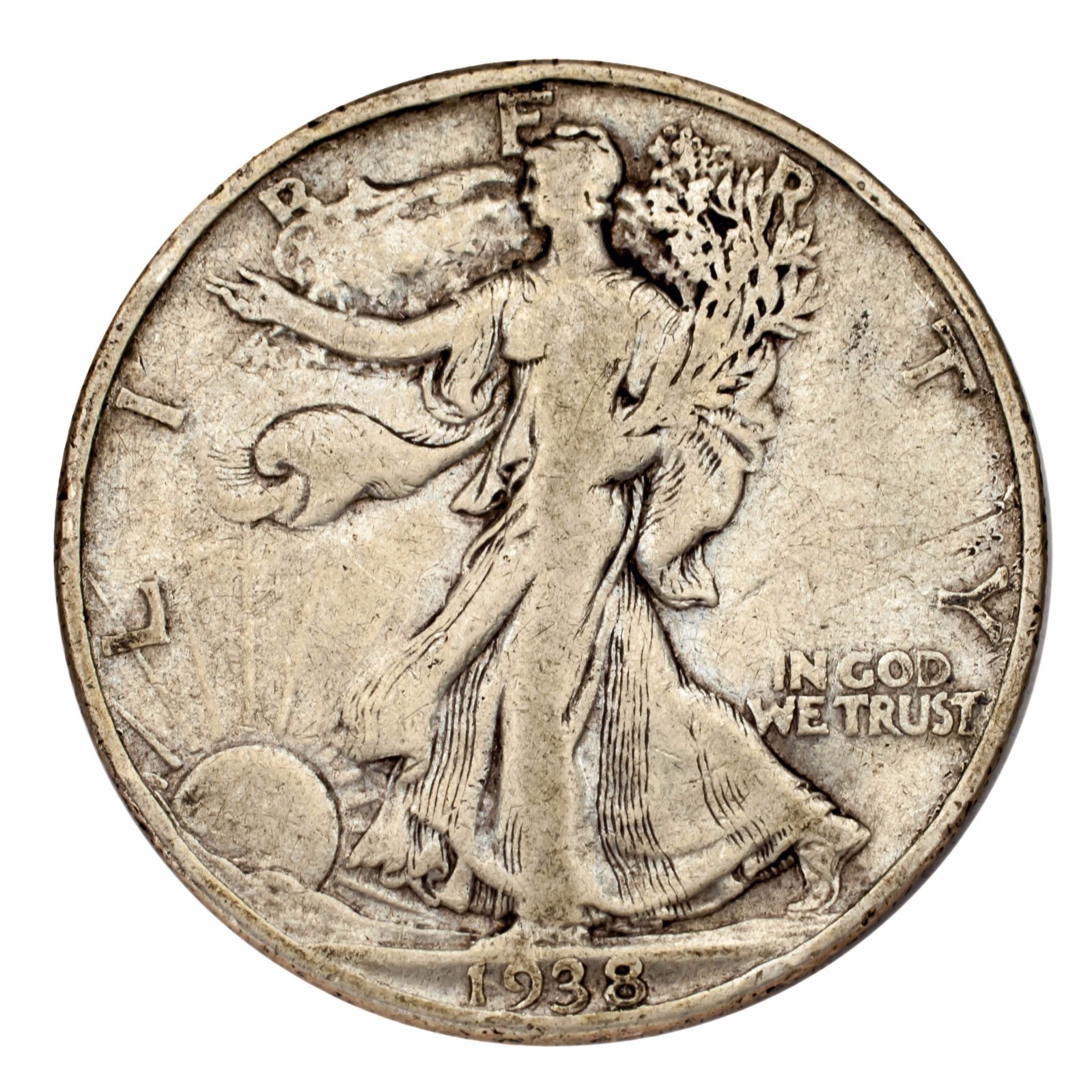1938-D Silver Walking Liberty Half Dollar 50C (Fine, F Condition)