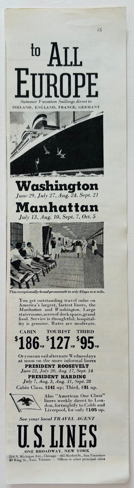 - 1938 U.S. Line Cruises Advertisement DC Manhattan Nautical Ship Sailing E90D2