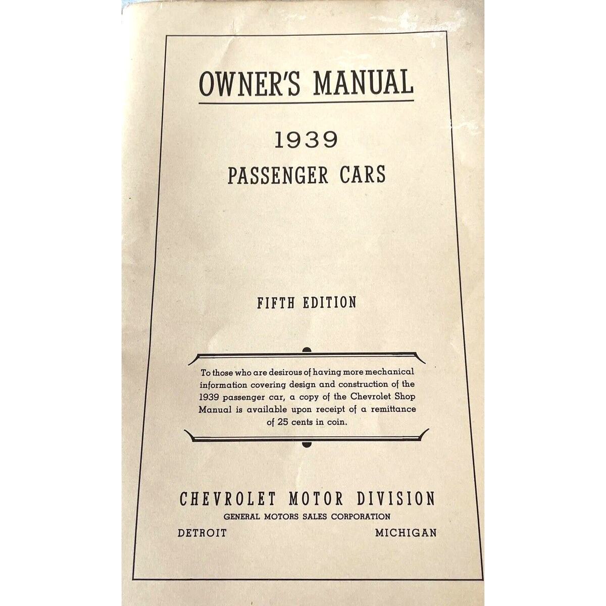 - 1939 Chevrolet Original Owner’s Passenger Car Manual 5th Edition – Vintage Guide