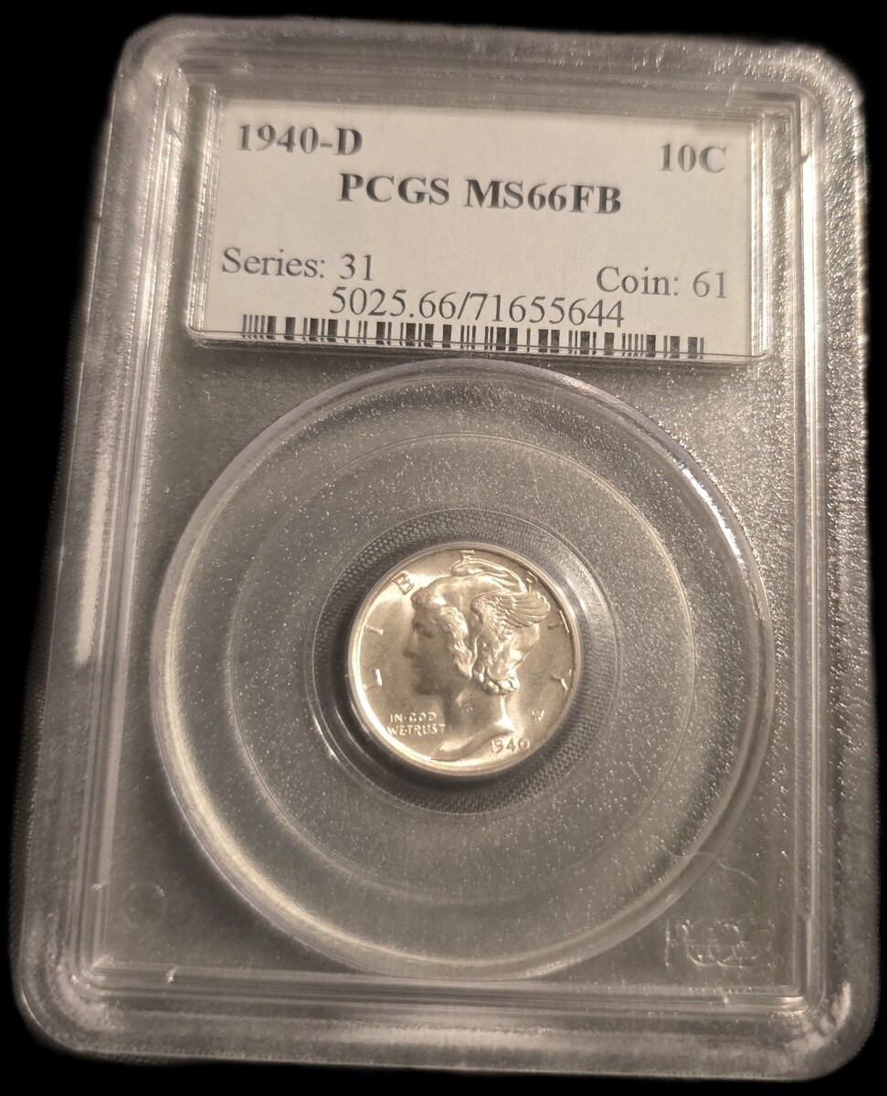 - 1940 D Mercury Dime 10c PCGS MS66 FB Full Bands