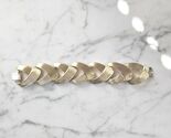 ?Style/Features: Capture a piece of American costume jewelry history with this spectacular vintage Coro gold tone link bracelet. Prominently double-signed with the Coro script Pegasus marks, this retro modern cuff features a bold dimensional basket weave or woven link design characteristic of the iconic pieces selected by Coro's design director Adolph Katz. The clear Des. Pat. Pend. mark refers to the patent application (US Design Patent D140948) issued in 1945 that protected this specific chunky gold tone link style. Highly collectible piece maintains itself as a statement cuff in the modern era. Ships in a teal bracelet box.