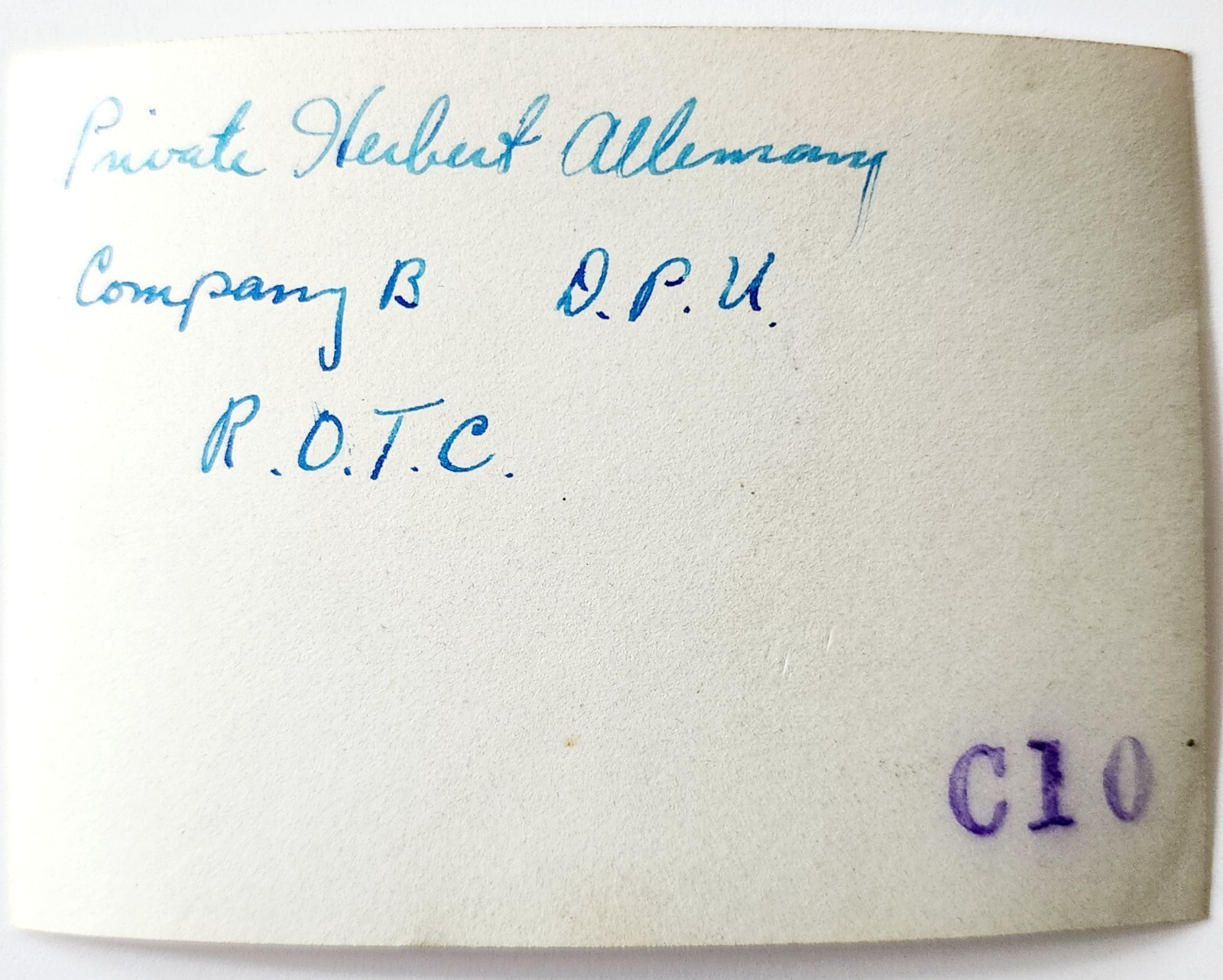 - 1940s WW2 Real Photograph Private Herbert Company B ROTC D.P.U. Military F10A